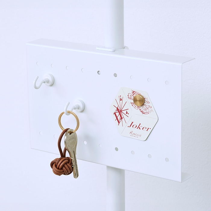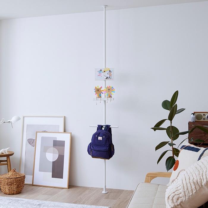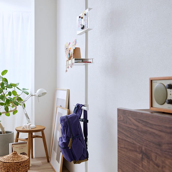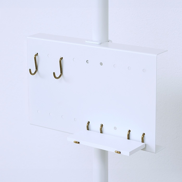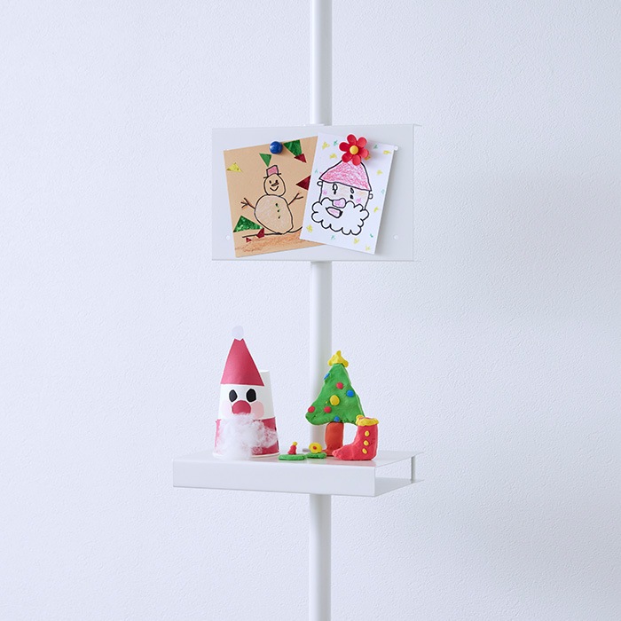 つっぱり(別売)を固定した後に付けはずしが可能。高さの調節やパーツの増設に便利です。
