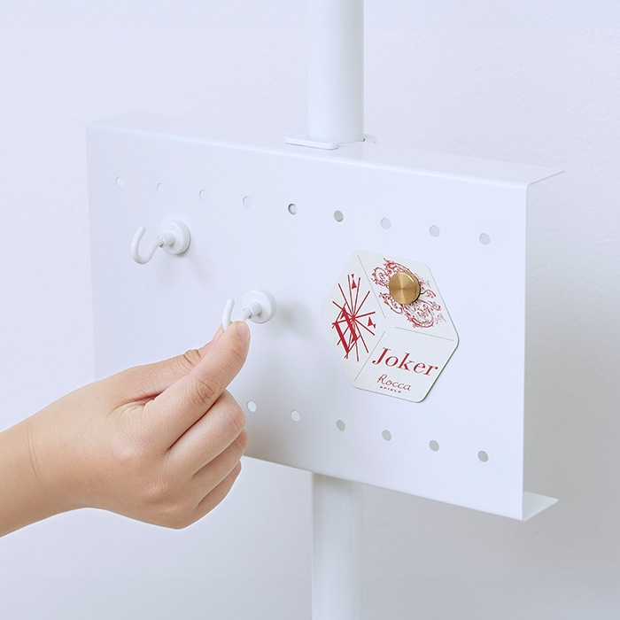 お手持ちのフックを引っかけて、コンパクトなディスプレイ棚としてお使いいただけます。