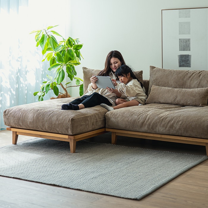 単品では1人用のコンパクトソファとして。別売のワイドタイプと組み合わせればコーナーカウチソファとしてお使いいただけます。