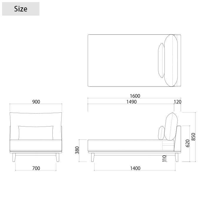 ■商品サイズ: 幅90×奥行き160×高さ85(座面高38)cm