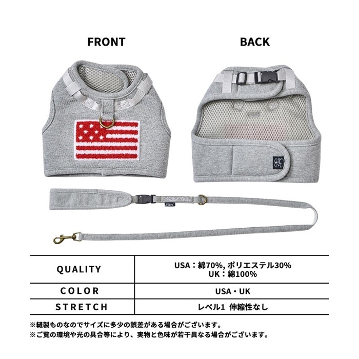 | 備考 | 大きな国旗の刺繍がインパクト大な、犬用のウェアハーネス。