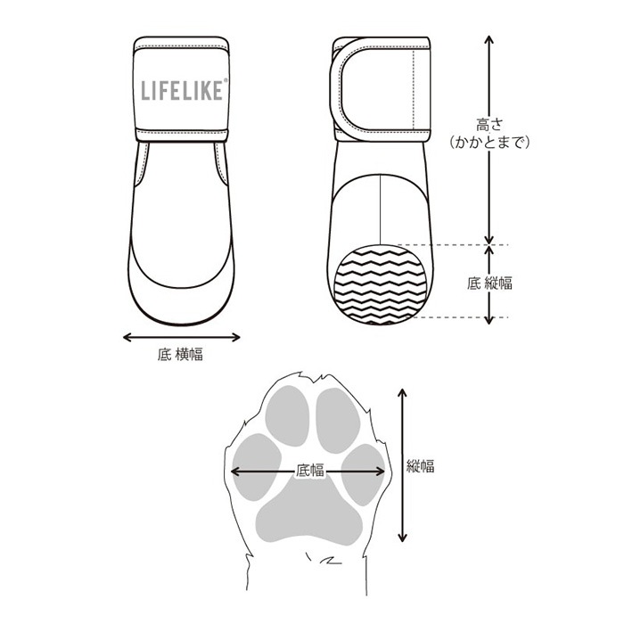 | ご注意点 | ・肉球の厚さや爪の形状により、サイズ表と着用感が異なる場合がございます。