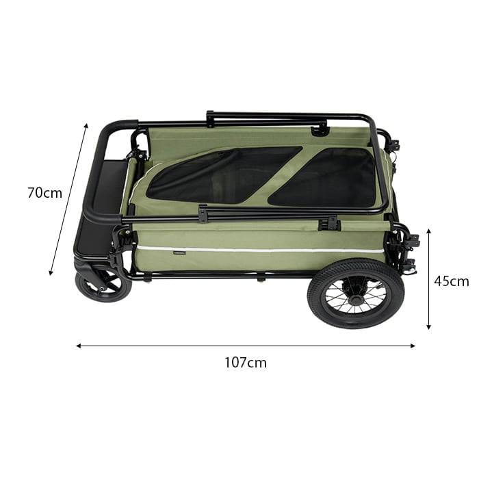 愛犬を開放的に乗せることができるほか、荷物が多い時は台車としても活躍。