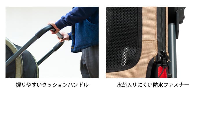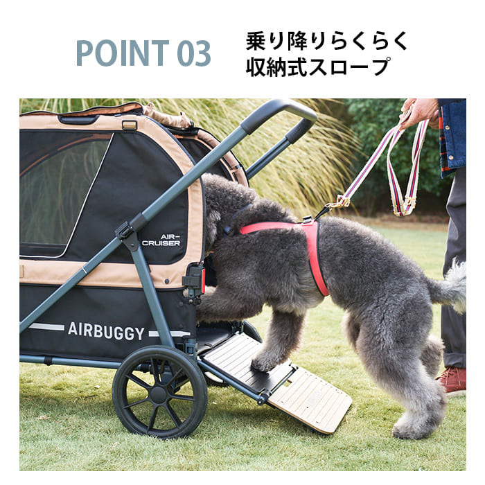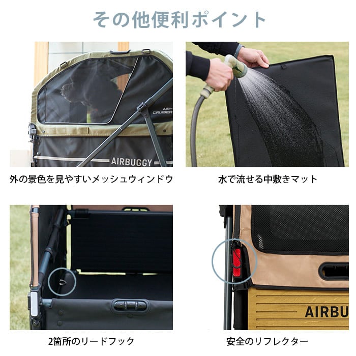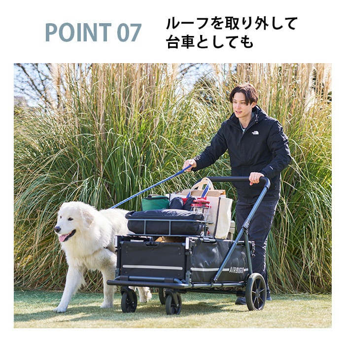 | 備考 | タフなのに軽い押し心地。耐荷重80kgの超大型犬サイズのペットカート「AIR CRUISER SET」