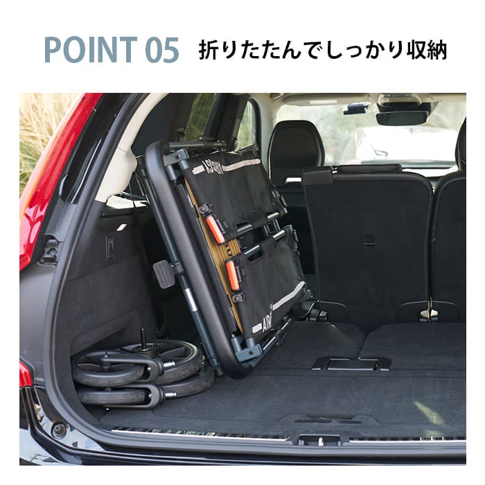 製品ご購入日より2年間(本体フレーム)/1年間(縫製品、車輪※タイヤ・チューブなどの消耗品除く)の製品保証付き