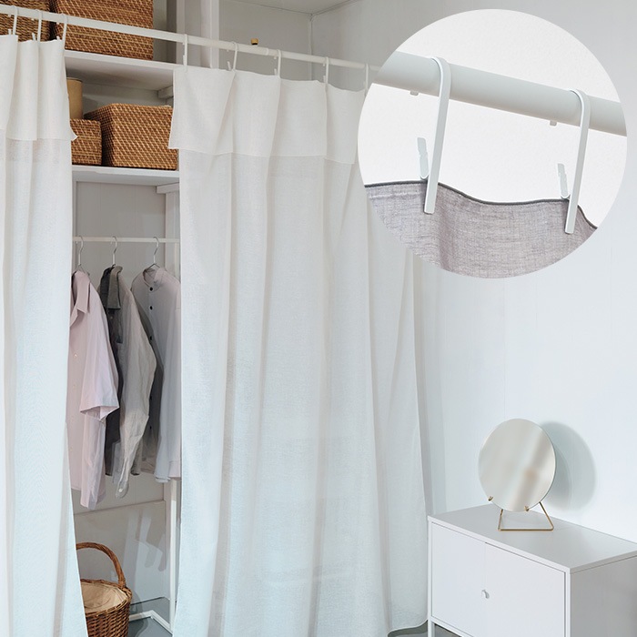 ハトメのない布も、縫製や加工をせずに自由に吊るすことができます。