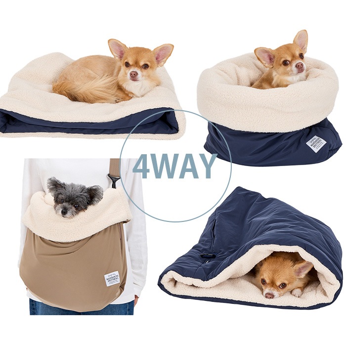 お出かけ先でもお家のようにくつろげる、持ち運びできるふかふかベッドのペットキャリーです。