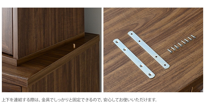 ・上下を連結する際は、金具でしっかりと固定できるので、安心してお使いいただけます。 |