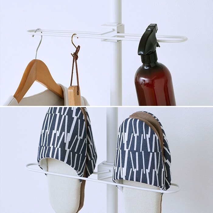 つっぱり(別売)を固定した後に付けはずしが可能。高さの調節やパーツの増設に便利です。