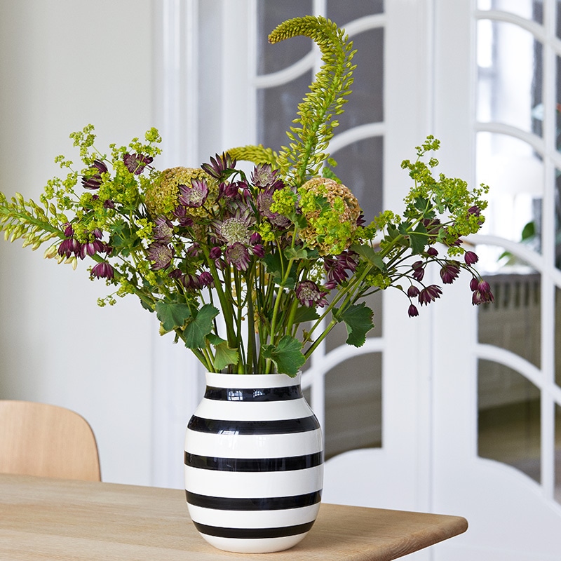 KAHLER(ケーラー)ブランドのアイコン的存在「Omaggio」のフラワーベースH20cmです。陶器のベースの模様は職人によるハンドペイントで作られており、モダンなデザインの中に、ケーラーが長い歴史の中で大切にしてきたクラフトマンシップがしっかりと感じられます。