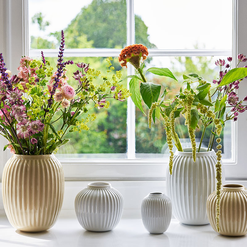 表面に施された縦目の凹凸は光によって表情が変わります。伝統を守りながら現代的なデザインを創り上げるKAHLER(ケーラー)ならではの美しさ。華やかなのに親しみやすいフラワーベースです。