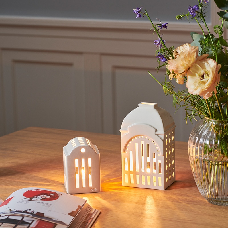 キャンドルの灯った小さな家からこぼれだす美しくあたたかな光に心奪われるキャンドルホルダー「スミス」。アーバニアはUrban(都市、都会)が語源のシリーズです。今日も世界のどこかで新たな建物が建てられ、変わっていく現代の街並みと同じように、アーバニアの種類もどんどん広がっています。