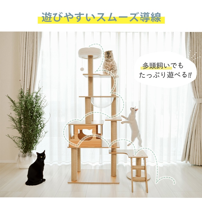 キャットタワー 木登り 運動 上下運動 アスレチック 多頭飼い 猫 ねこ ネコ Cat キャット Wanyanya わにゃにゃ uminecco ウミネッコ ナチュラル 木製