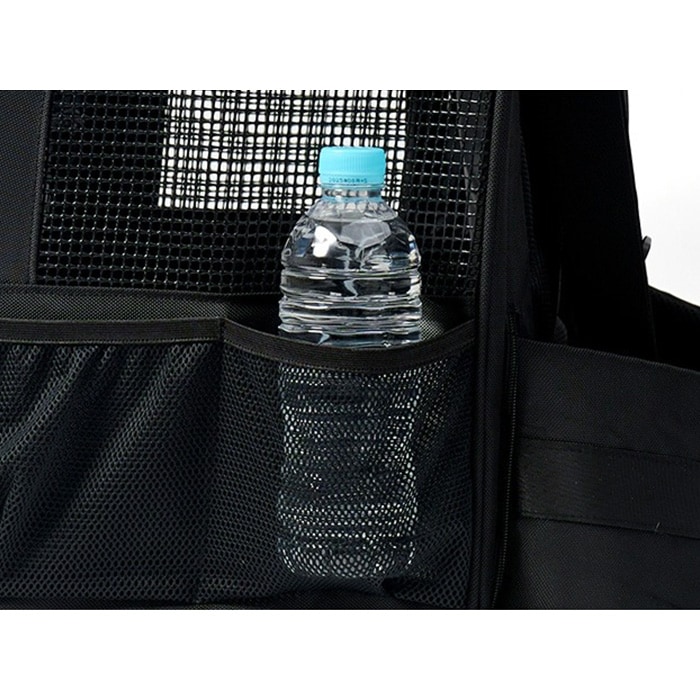 サイドのメッシュ窓を開き、底板に付属したクッションを出して使うことが可能。