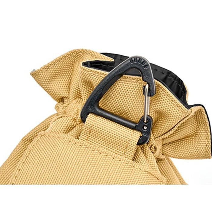 背面についたカラビナを使えば、ポーチ単体で使用することも可能。