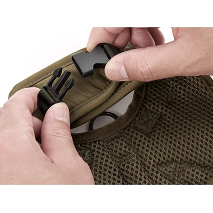 首回りと胴回りのベルクロを留めるだけの簡単着脱仕様。
