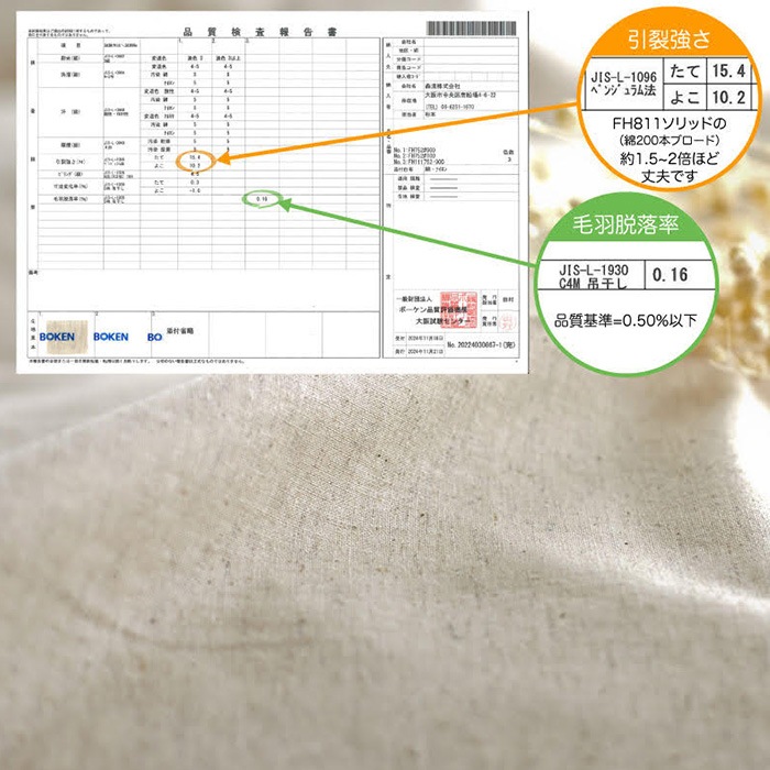 | ご注意点 | ・素材の特性上、ネップ(黒っぽい粒)やスラブ(不規則な筋)が生じることがあります。天然素材ならではの風合いとしてお楽しみください。 |
