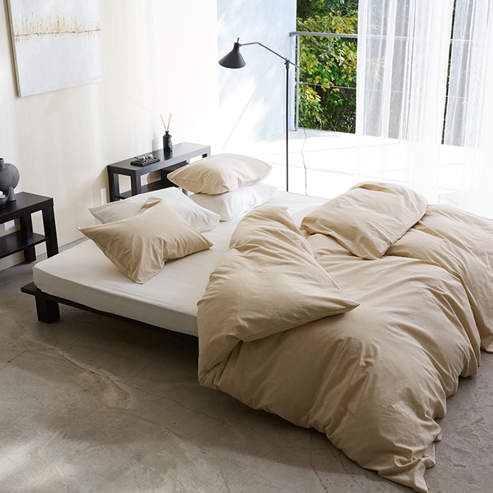 コットンの保温性とリネンの吸湿速乾性の機能性をあわせ持ち、夏はもちろん、布団の中で湿気がこもりがちな冬場も快適に過ごせます。