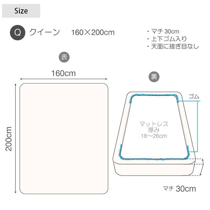 ■商品サイズ: 160×200×30cm(上下ゴム)