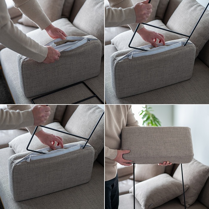 別売ソファ付属の肘クッションに差し込むだけの簡単取り付け。