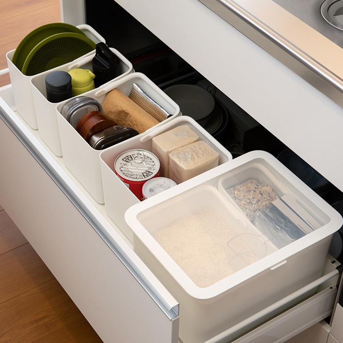 システムキッチンの引き出し内の仕切りや、リビングのガジェット類・おもちゃなどの収納としてもおすすめです。