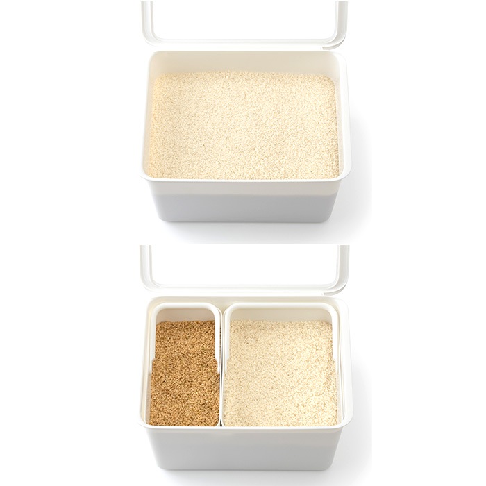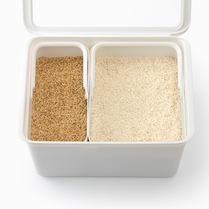 別売りの米びつやスリムタイプのケースと組み合わせて使用すれば、白米と雑穀米を分けて収納可能。