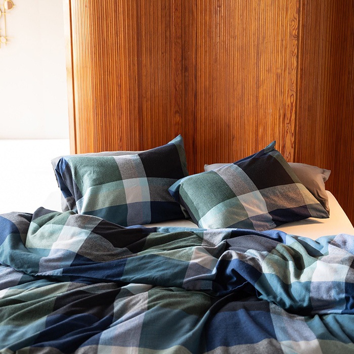 月夜色のブロックチェック柄がおしゃれな「ノクターン」ダブル用掛け布団カバー。