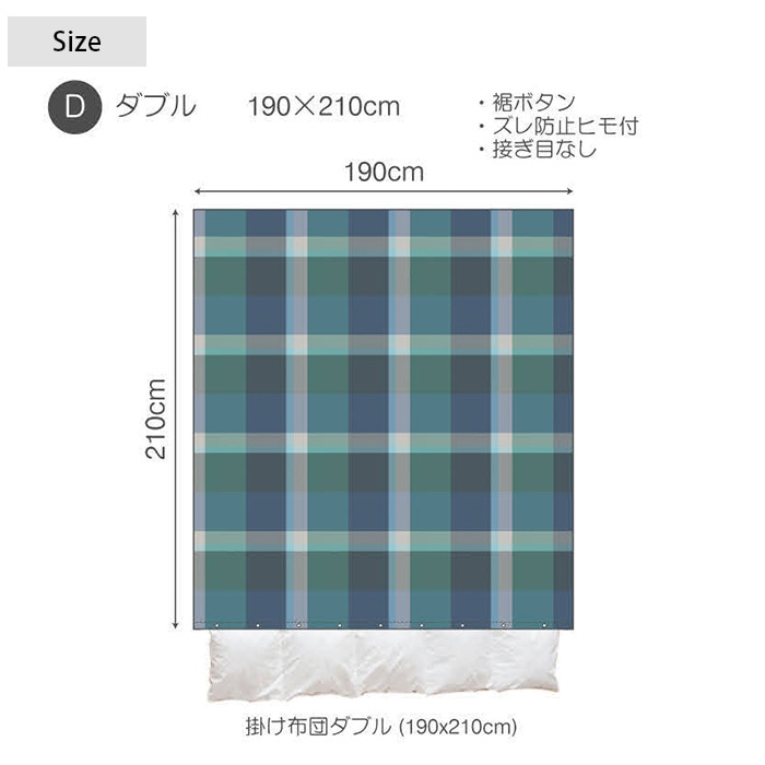 | 備考 | 月夜色のブロックチェック柄がおしゃれな「ノクターン」ダブル用掛け布団カバー。