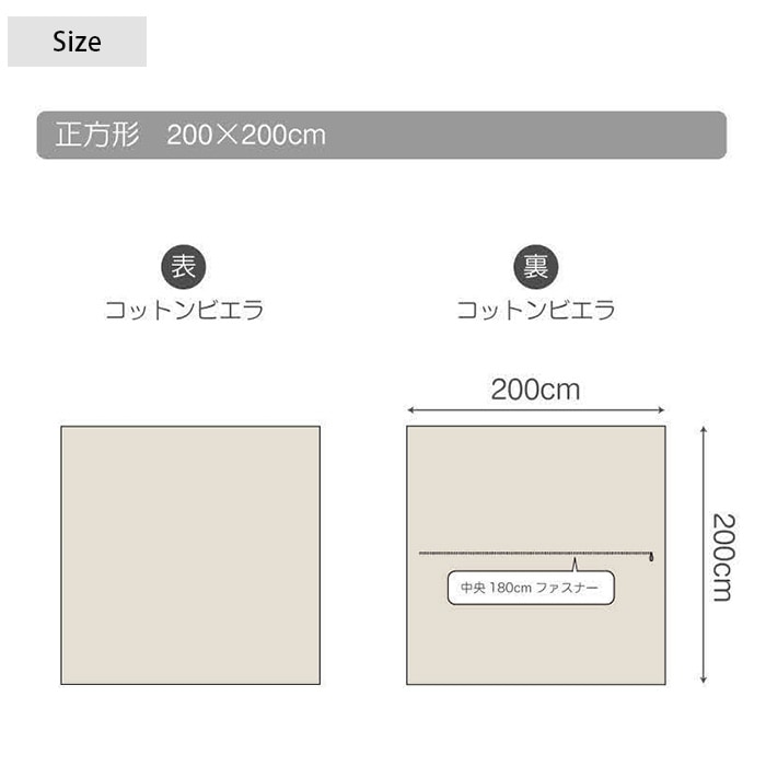 | 備考 | しっとりなめらかな肌ざわりの「コットンビエラ」正方形用こたつカバー。