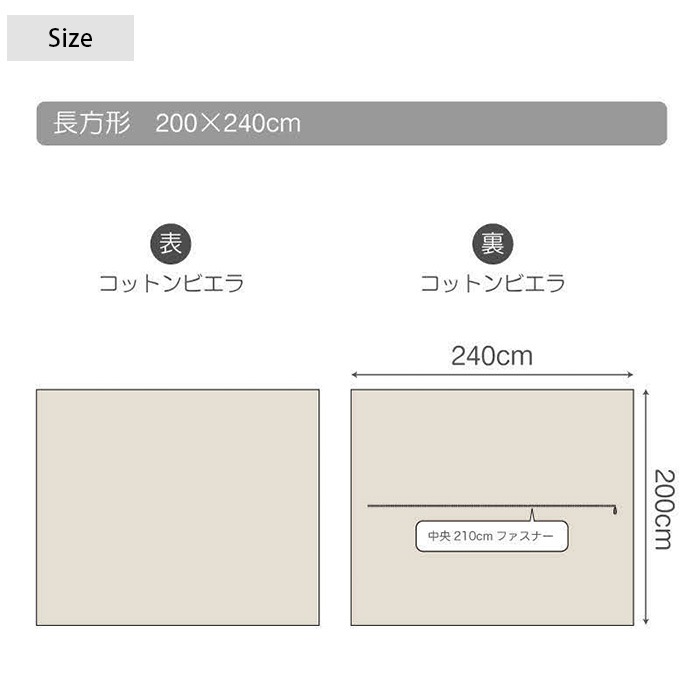| 備考 | しっとりなめらかな肌ざわりの「コットンビエラ」長方形用こたつカバー。