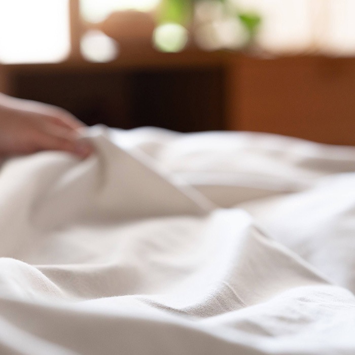天然素材なので静電気が起きにくく、心地よい肌ざわりが特長。です。