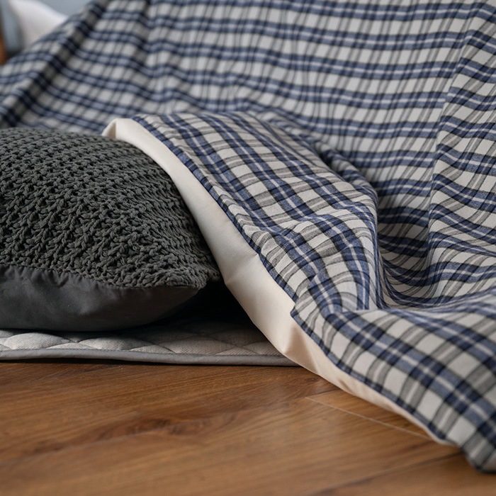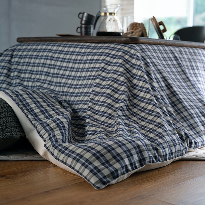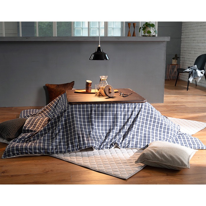 マニッシュなチェックがインテリアのポイントになる「グラニット」正方形用こたつカバー。