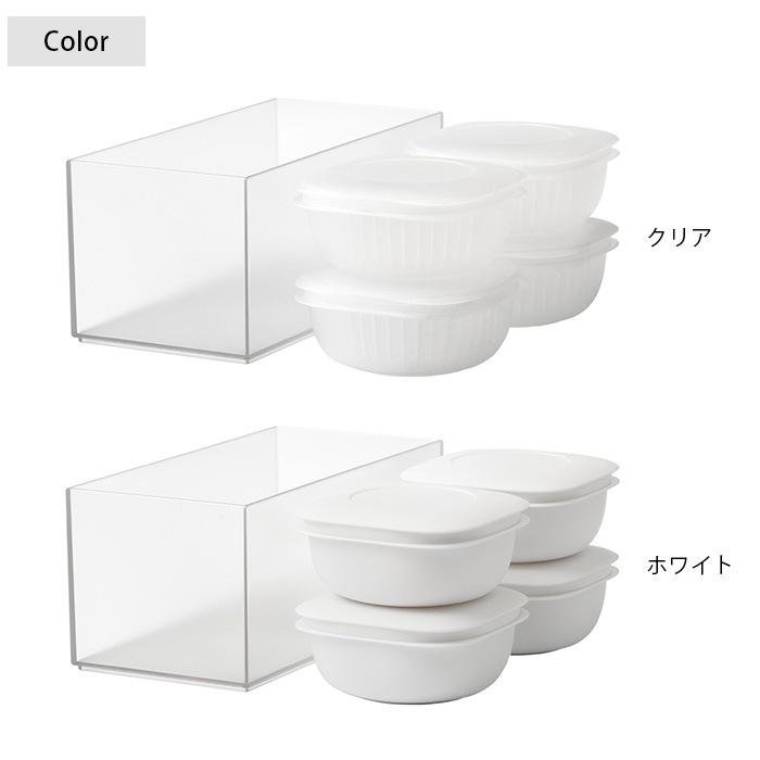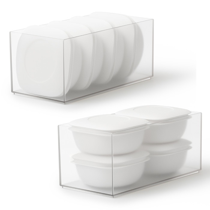 セットのボックスは保存容器4個を立てても横にしても収納でき、使わない際にスマートに収納できます。