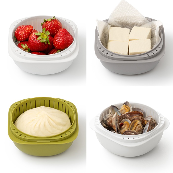 豆腐の水切り、野菜やフルーツの保存、肉まんのあたため、酒蒸しなど様々な用途に対応します。