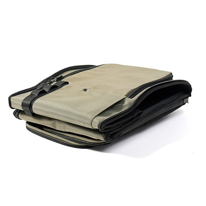 側面のファスナーを開けば、コンパクトに折りたたんで収納することができます。